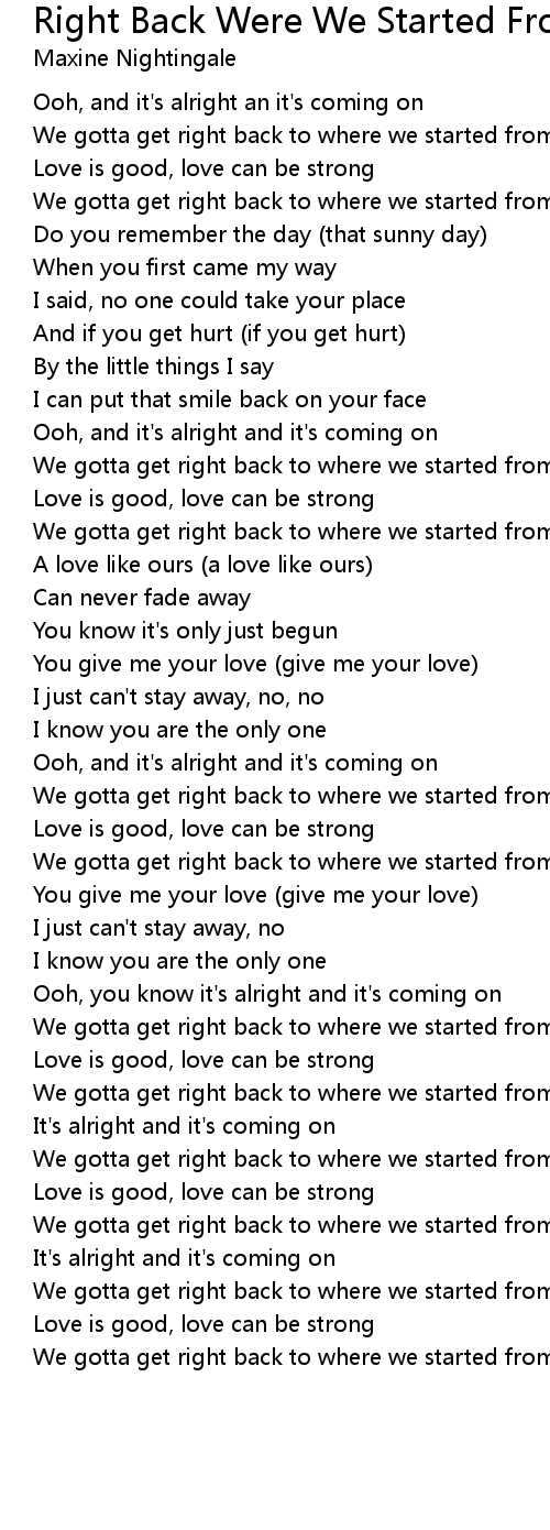 We gotta get right back to where we started from |