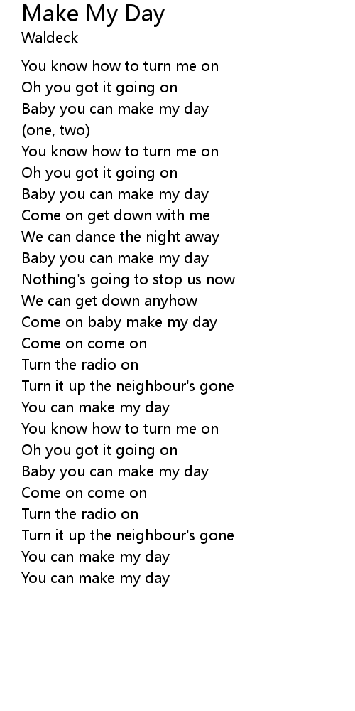 Come on baby make my day |