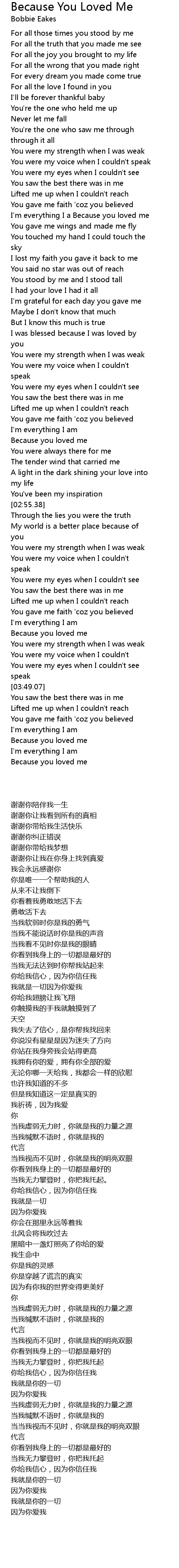 I'm everything I a Because you loved me |
