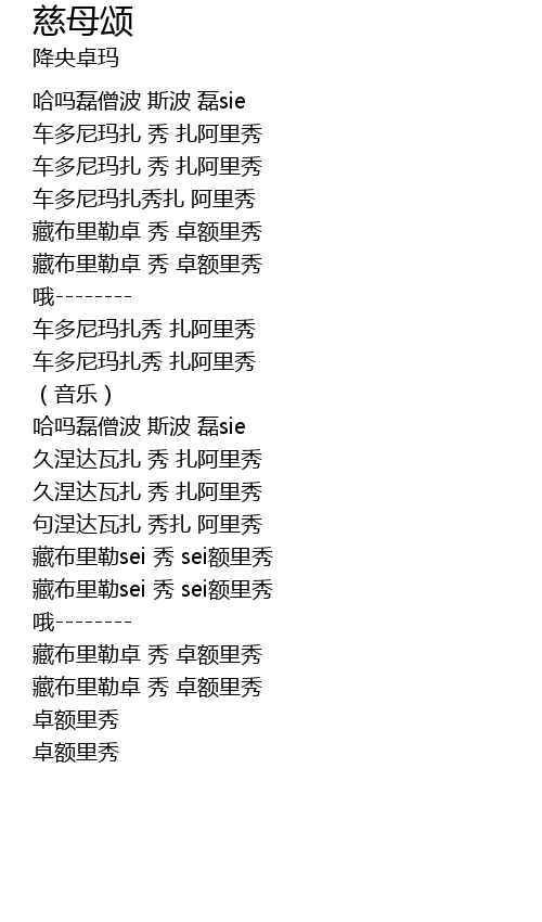 | [01:38.500] | 车多尼玛扎秀 扎阿里秀 |