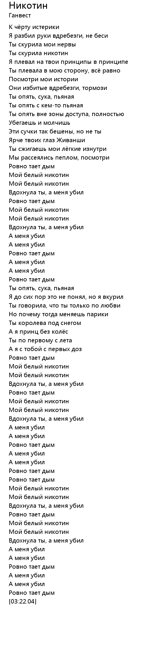Ты скурила никотин |