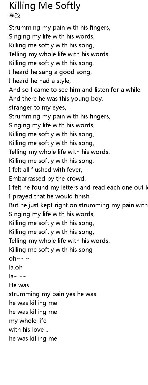 Killing me softly with his song. |