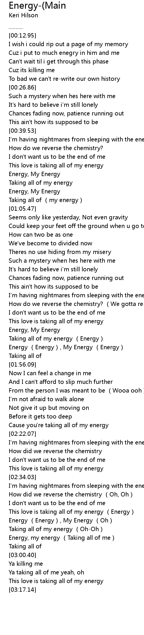 | [02:55.08] | Energy, my energy (Taking all of me) |