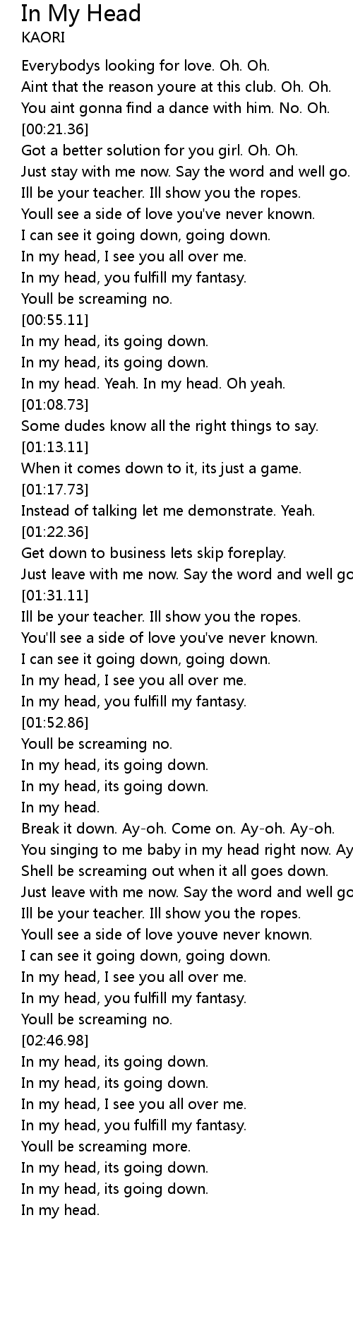 You singing to me baby in my head right now. Ay-oh. Ay-oh. Come on. |
