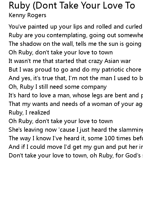 Don't take your love to town, oh Ruby, for God's sake turn around |