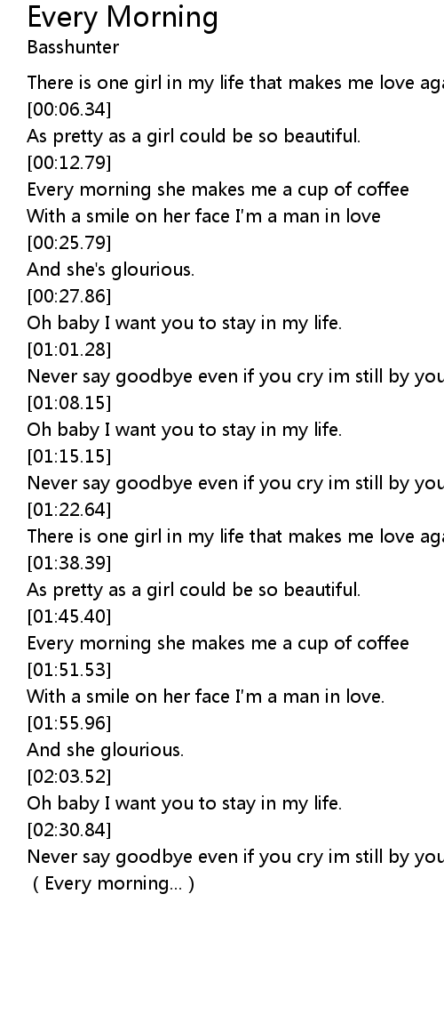 | [00:17.54] | Every morning she makes me a cup of coffee |