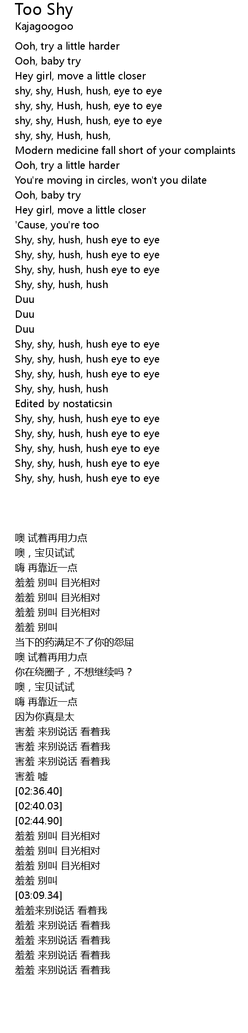 [02:53.89] Shy, shy, hush, hush eye to eye