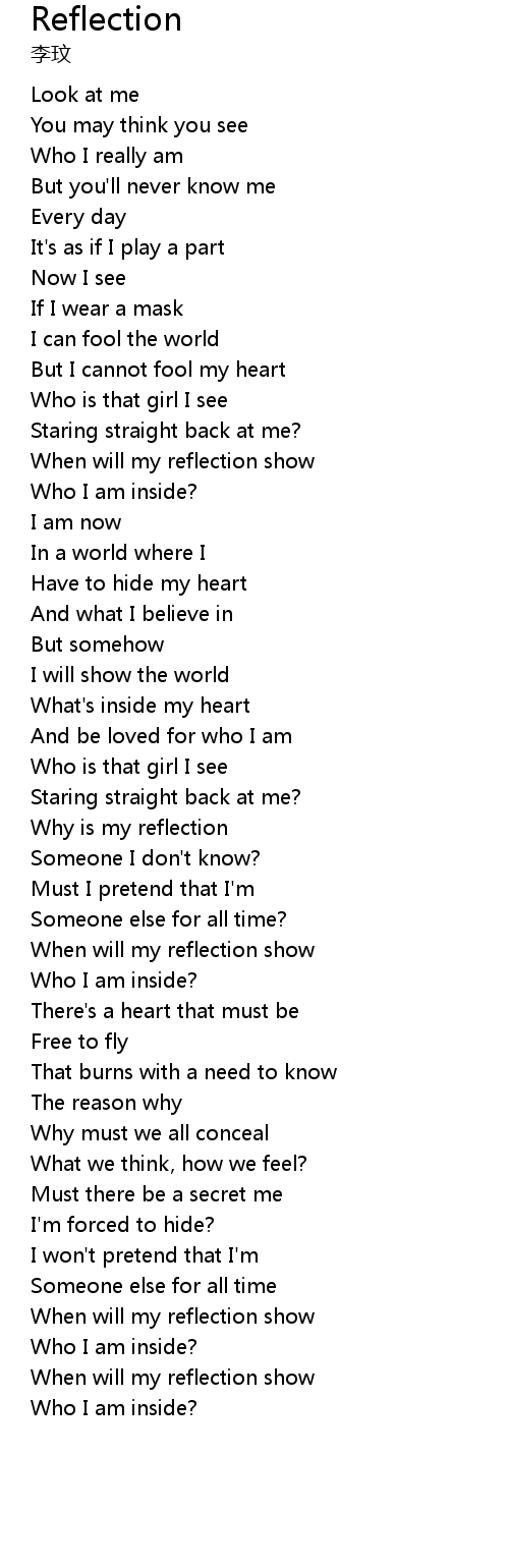 | [00:53.000] | When will my reflection show |