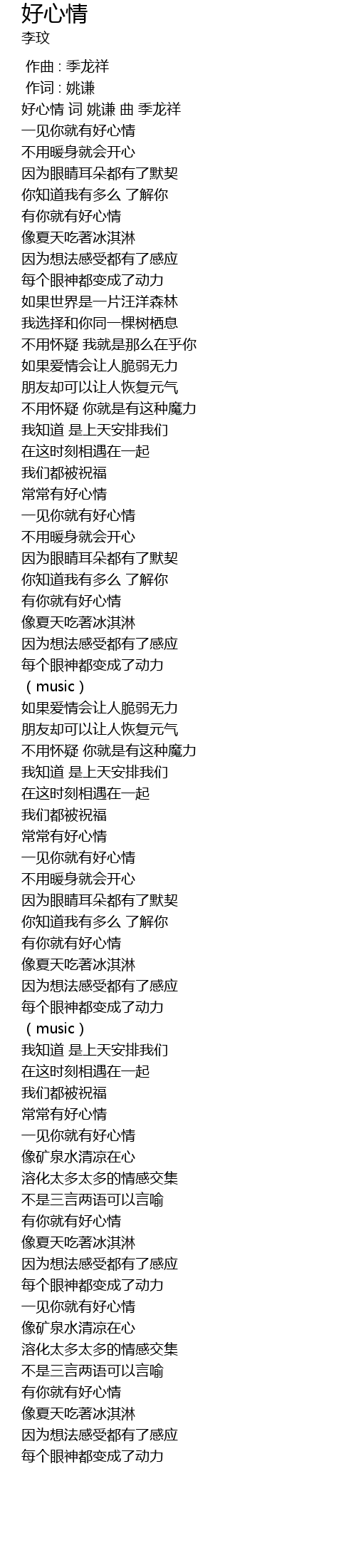 | [00:01.79] | 好心情 词 姚谦 曲 季龙祥 |