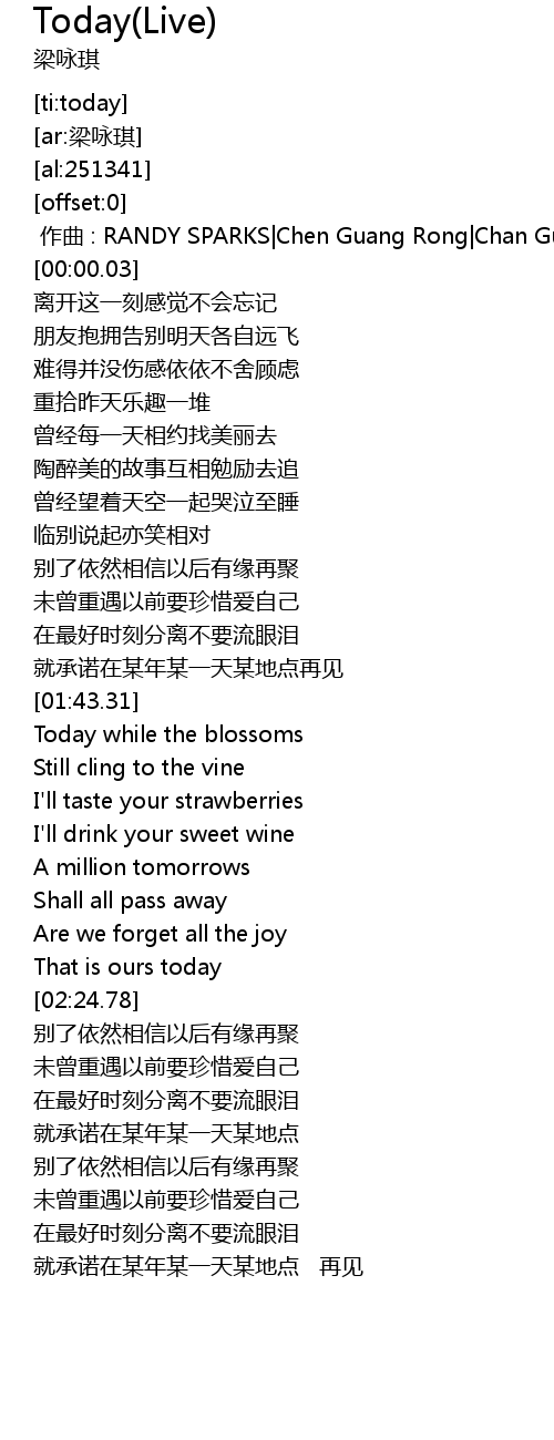 | [02:51.47] | 别了依然相信以后有缘再聚 |