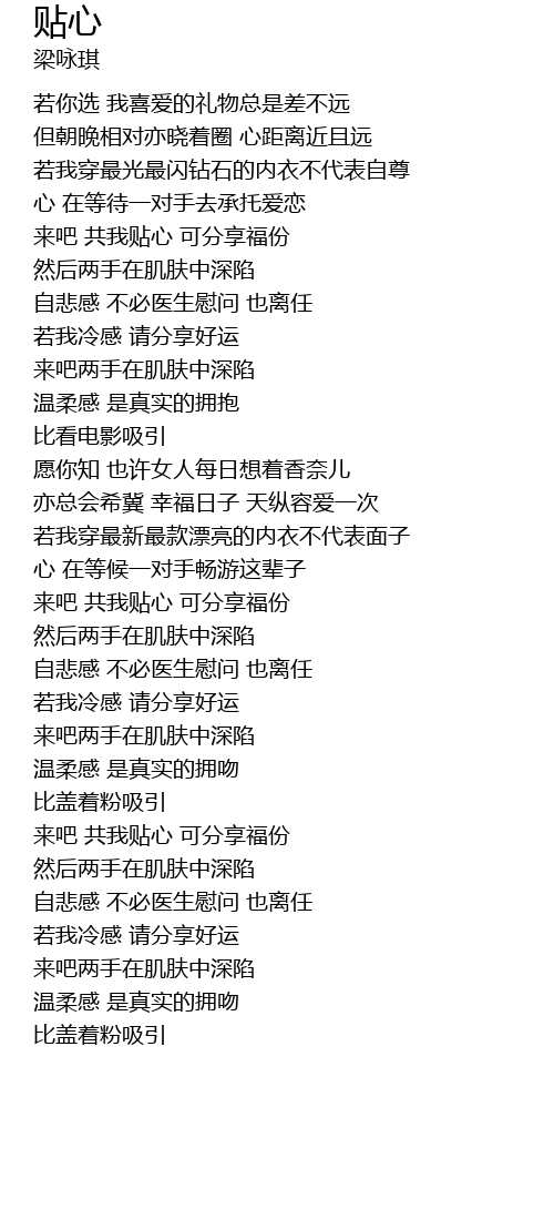 | Song | 贴心 |