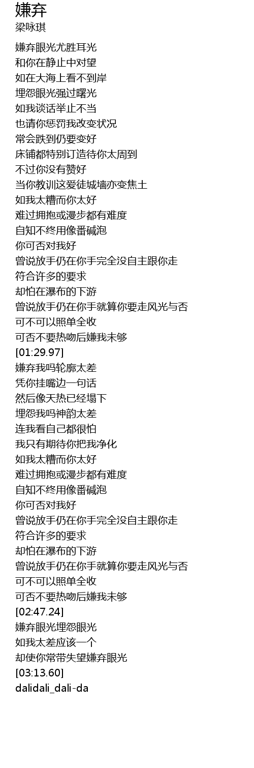 | [01:45.09] | 嫌弃我吗轮廓太差 |