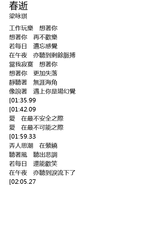 | [02:37.89][01:35.99] | 深刻的春季 |