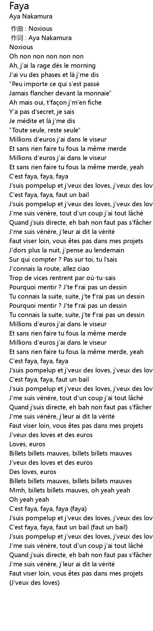 | [02:25.06] | C'est faya, faya, faut un bail (faut un bail) |