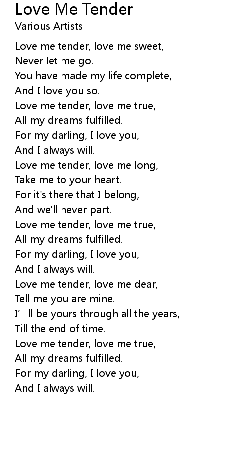 | [00:03.37] | Love me tender, love me sweet, |