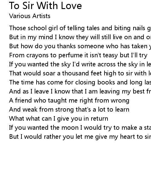 But I would rather you let me give my heart to sir with love |