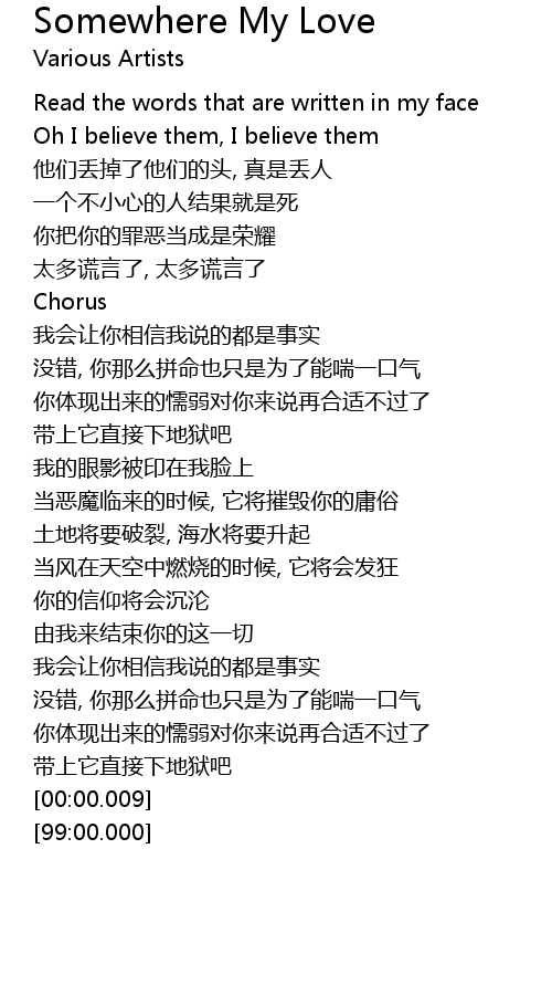 | [01:22.34] | wǒ huì ràng nǐ xiāng xìn wǒ shuō de dōu shì shì shí |