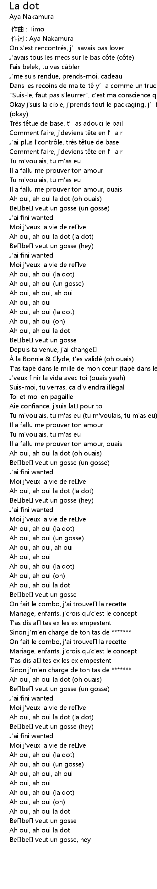 | [02:02.886] | Ah oui, ah oui la dot (la dot) |