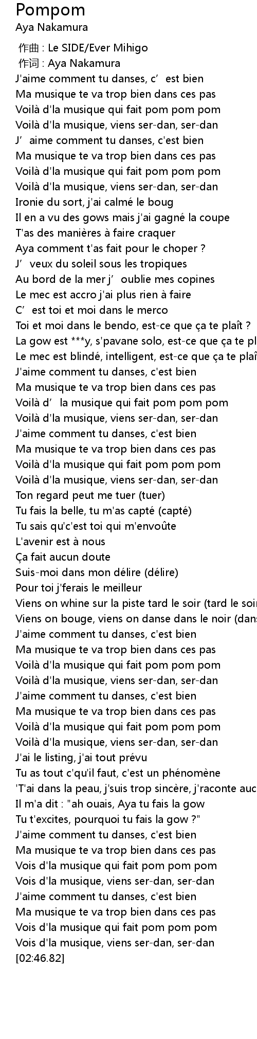 | [00:01.000] | 作词 : Aya Nakamura |