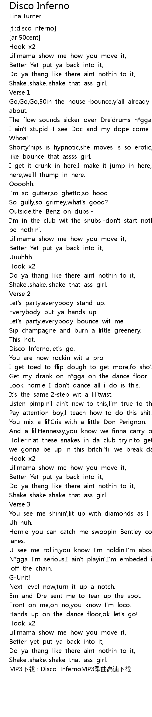 | [02:50.498] | MP3 xia zai: Disco InfernoMP3 ge qu gao su xia zai |