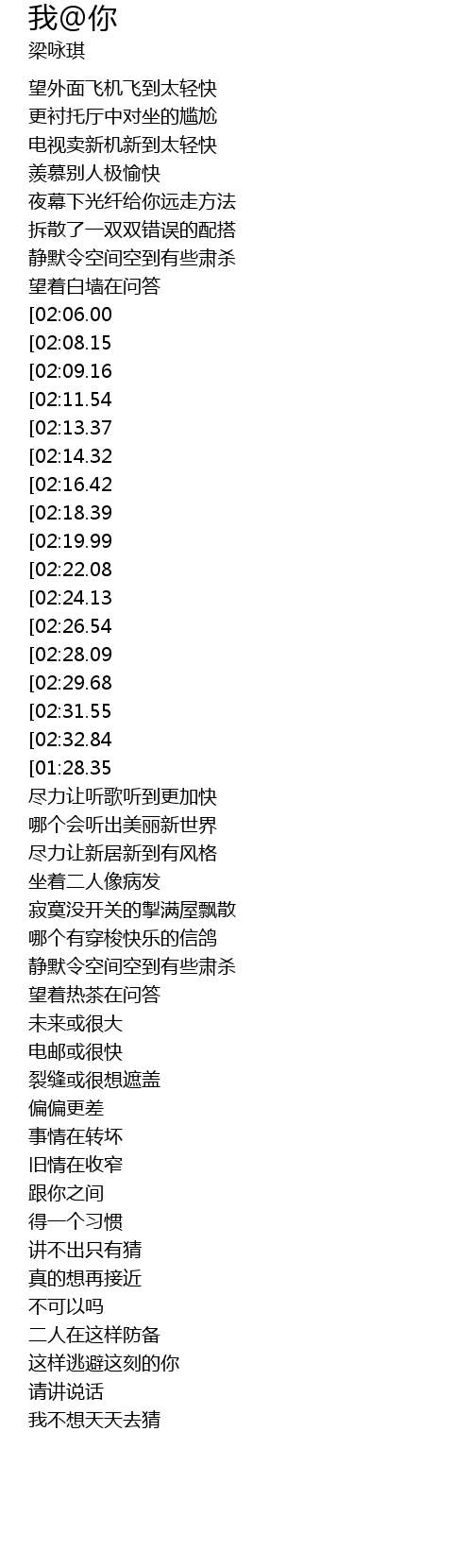 | [02:57.83][02:06.00][00:59.73] | 谁是你 我是我 |