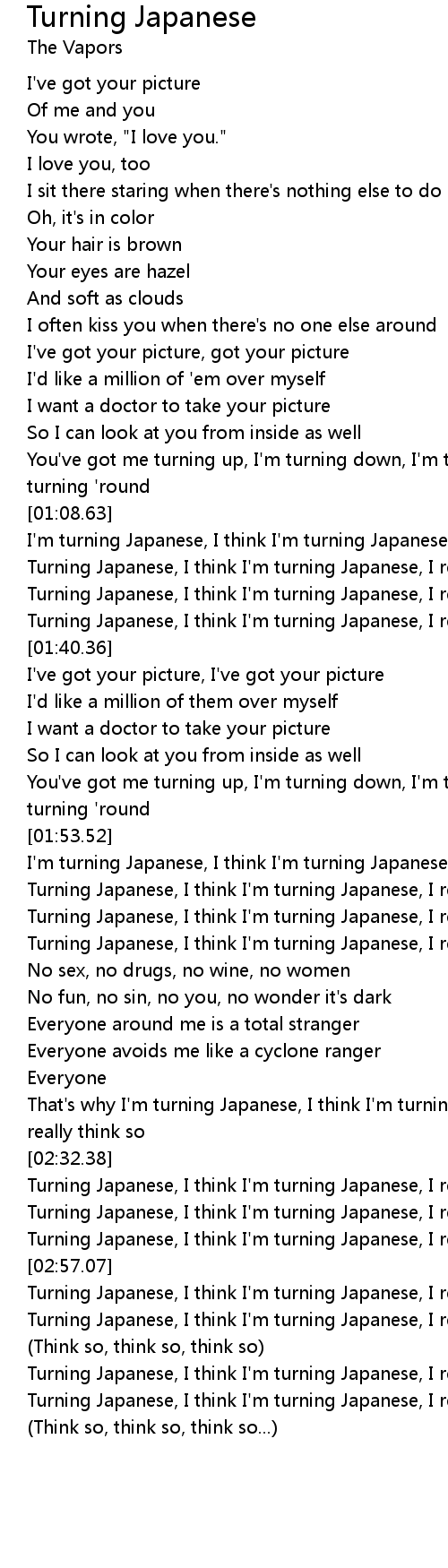 That's why I'm turning Japanese, I think I'm turning Japanese, I really think so |