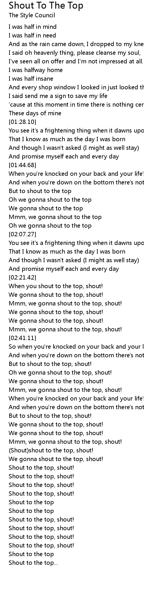 Shout To The Top Lyrics