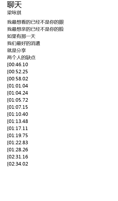 | [02:12.34][01:10.40] | 陪我聊天陪我聊天 |