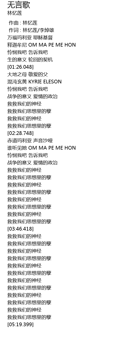 | [00:00.00] | 作曲 : 林忆莲 |