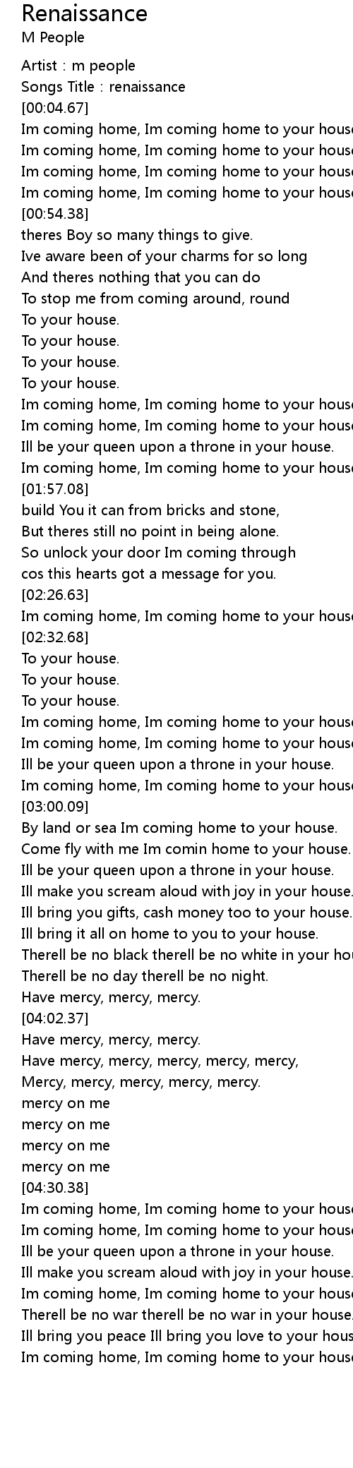 | [01:52.22] | Im coming home, Im coming home to your house. |