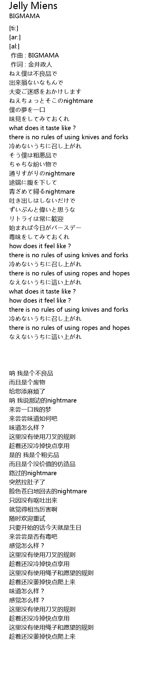 | [00:00.000] | 作曲 : BIGMAMA |