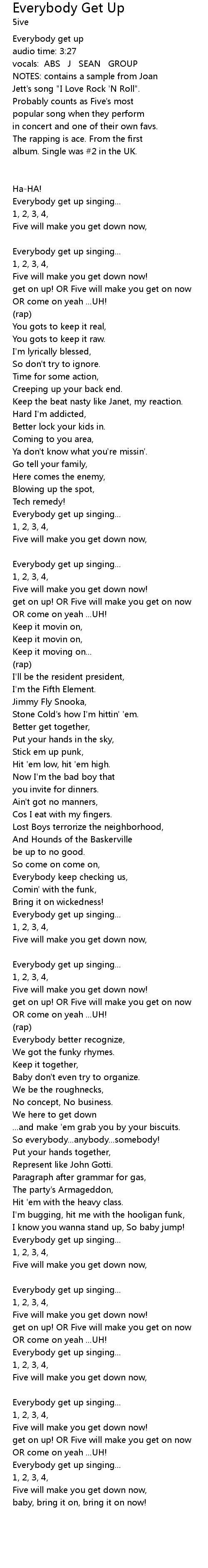 get on up! OR Five will make you get on now |