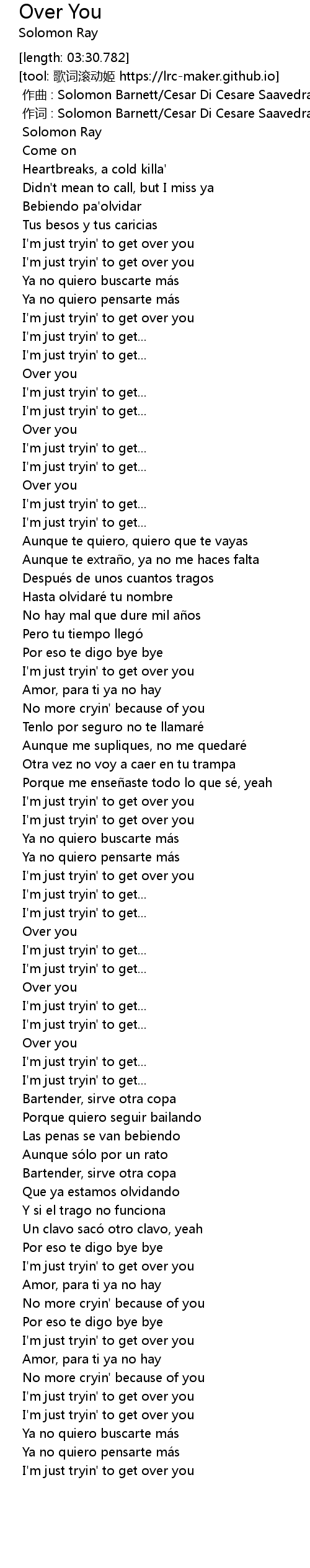 | [00:00.000] | 作曲 : Solomon Barnett/Cesar Di Cesare Saavedra/Daniel Valencia |