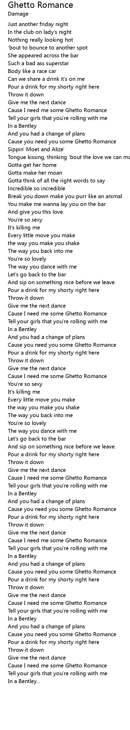 Cause I need me some Ghetto Romance |