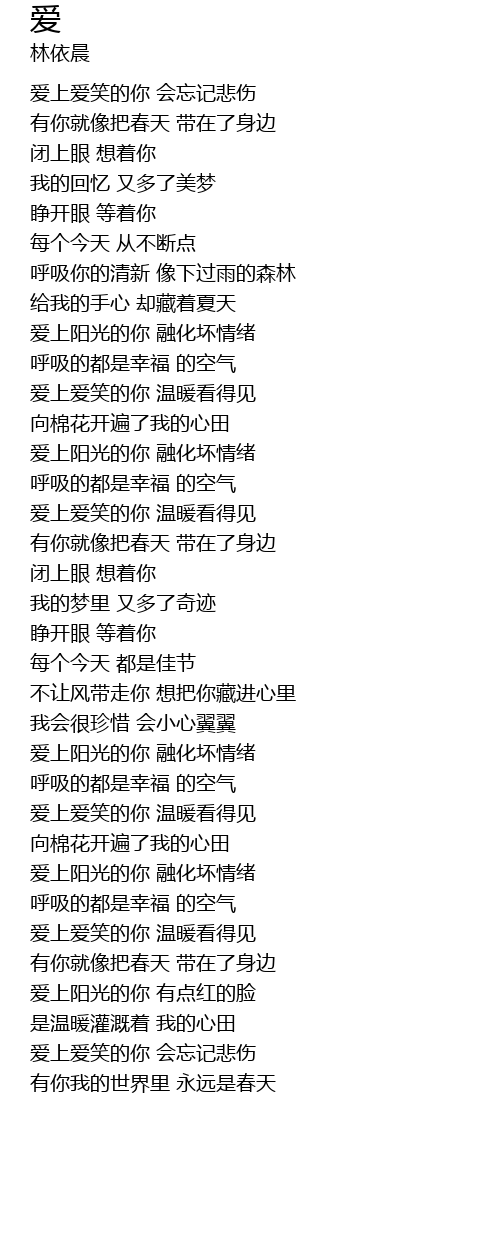 | [02:59.190] | yǒu nǐ wǒ de shì jiè lǐ yǒng yuǎn shì chūn tiān |