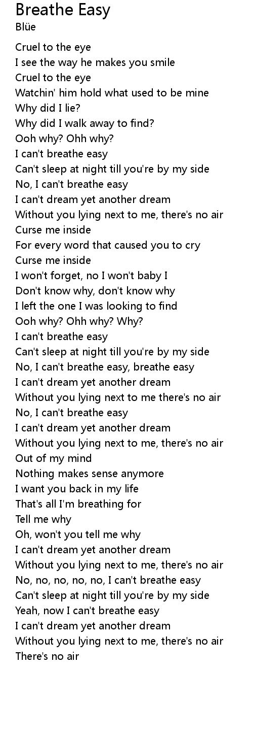 No, I can't breathe easy, breathe easy |