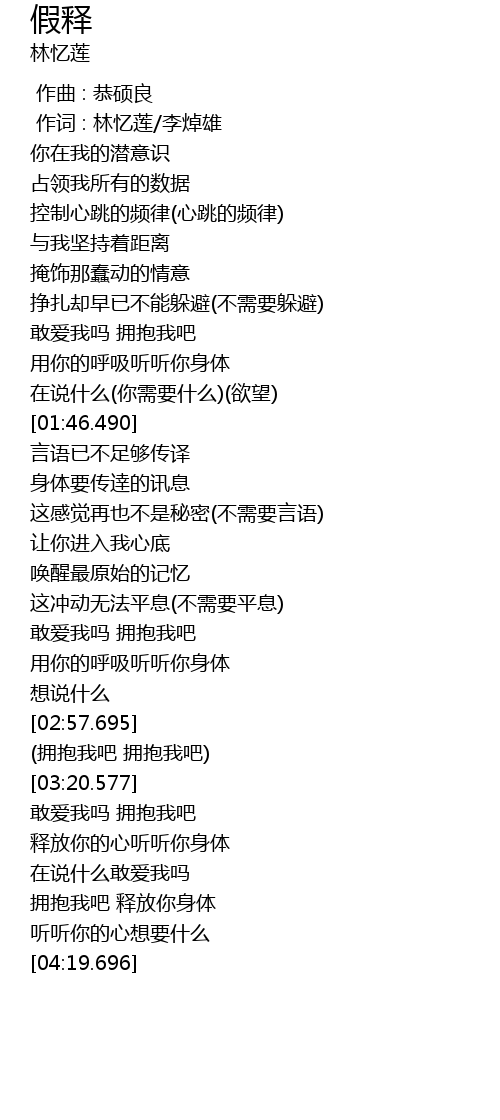 | [00:01.00] | 作词 : 林忆莲/李焯雄 |