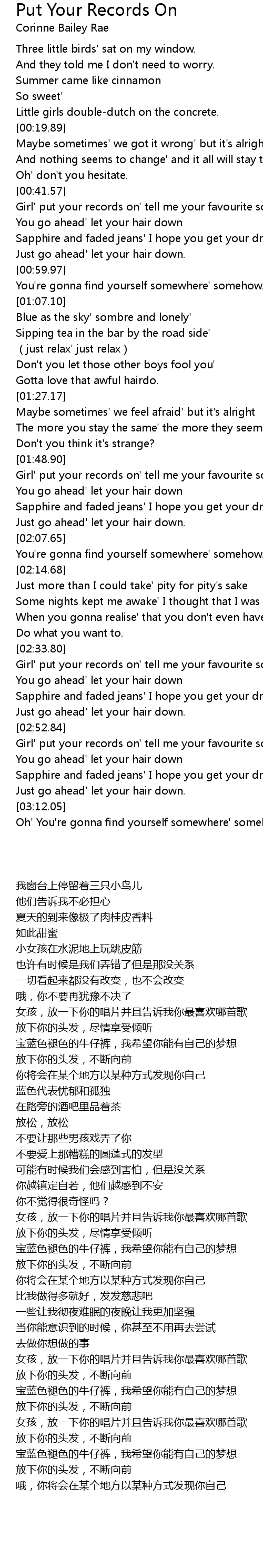 | [02:34.40] | Girl' put your records on' tell me your favourite song |