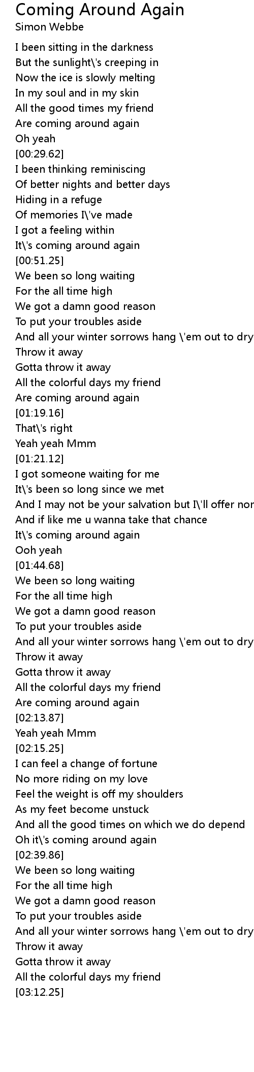 Oh it\'s coming around again |