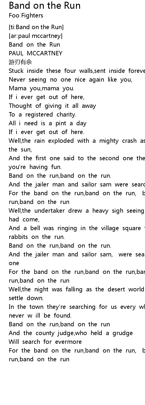 | [04:50.32] | For the band on the run,band on the run, band on the run,band on the run |