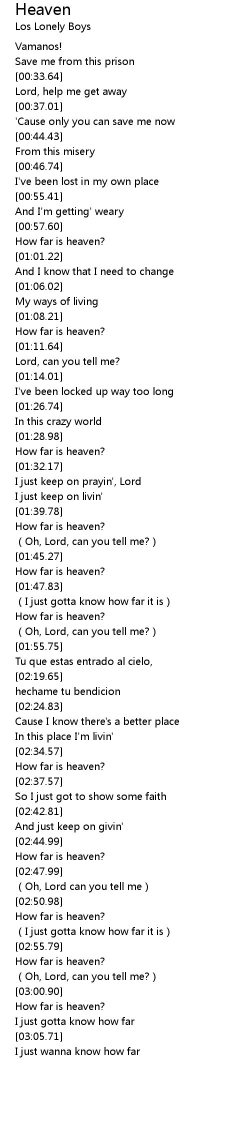| [02:17.34] | Tu que estas entrado al cielo, |