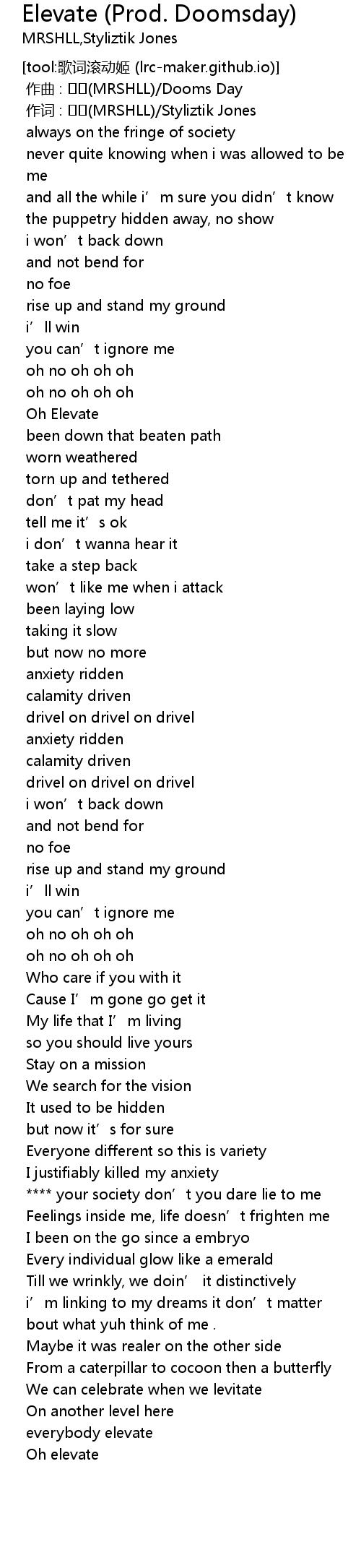 | [00:00.000] | zuò qǔ : MRSHLL Dooms Day |