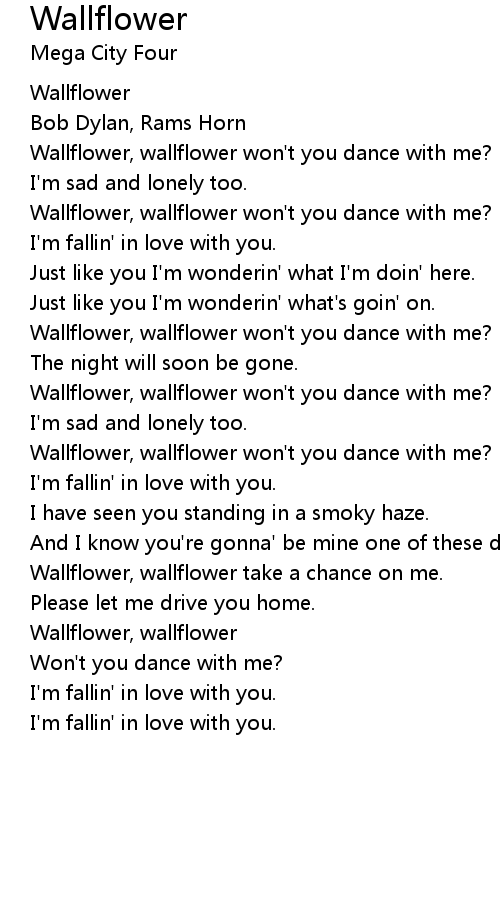 Wallflower, wallflower won't you dance with me? |