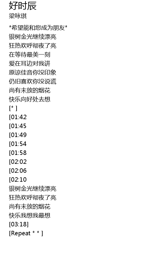 | [02:39][01:42][00:43] | 好时辰不想虚度过 |