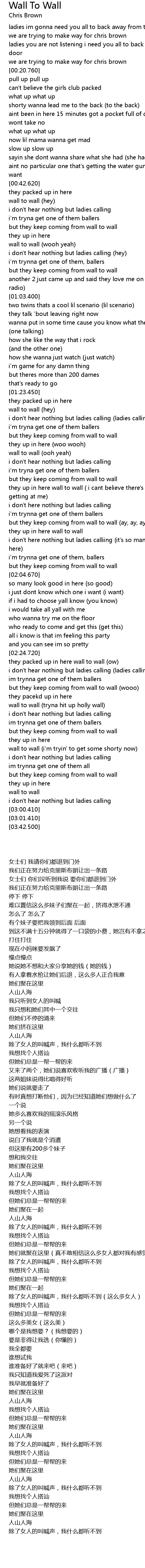 wall to wall (i'm tryin' to get some shorty now) |