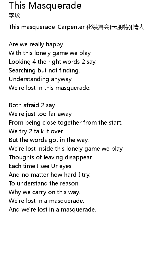 | This masquerade-Carpenter 化装舞会(卡朋特)[情人] | |