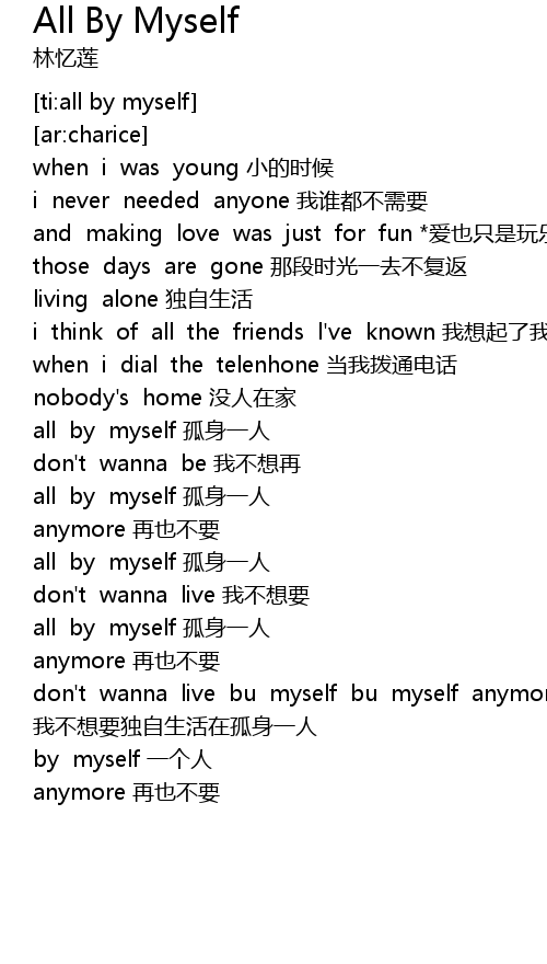 | [01:01.916] | all by myself 孤身一人 |