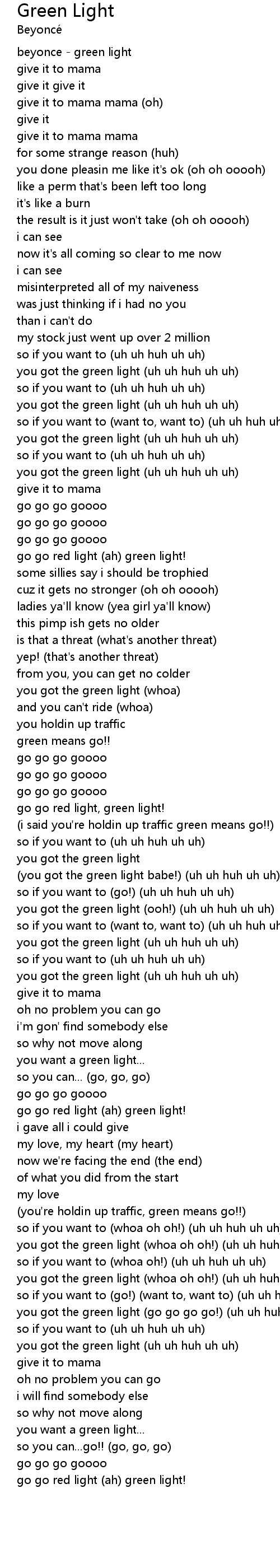 you got the green light (ooh!) (uh uh huh uh uh) |