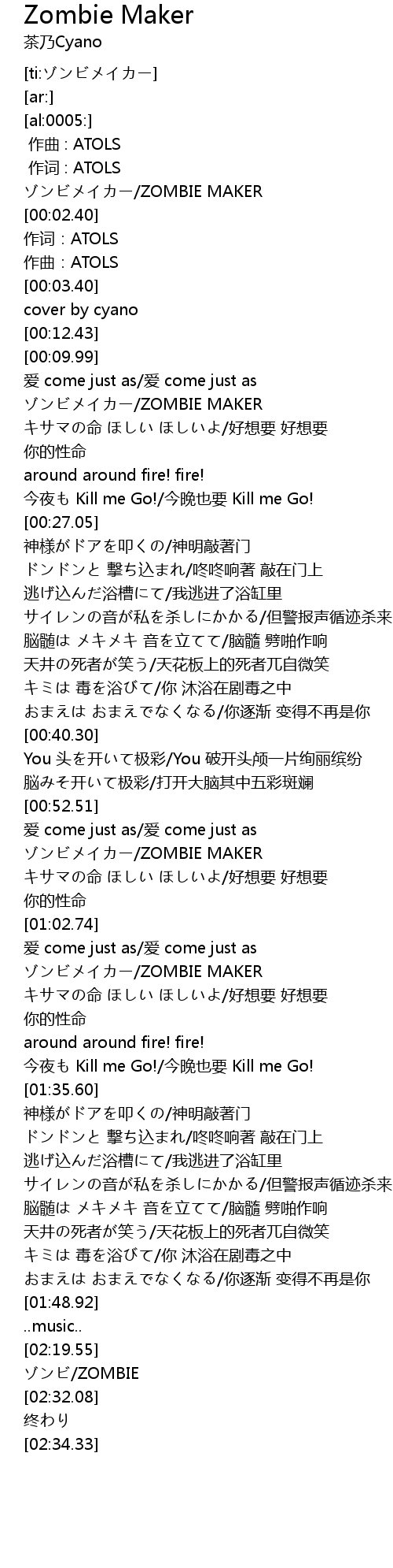 | [02:20.51] | ZOMBIE |