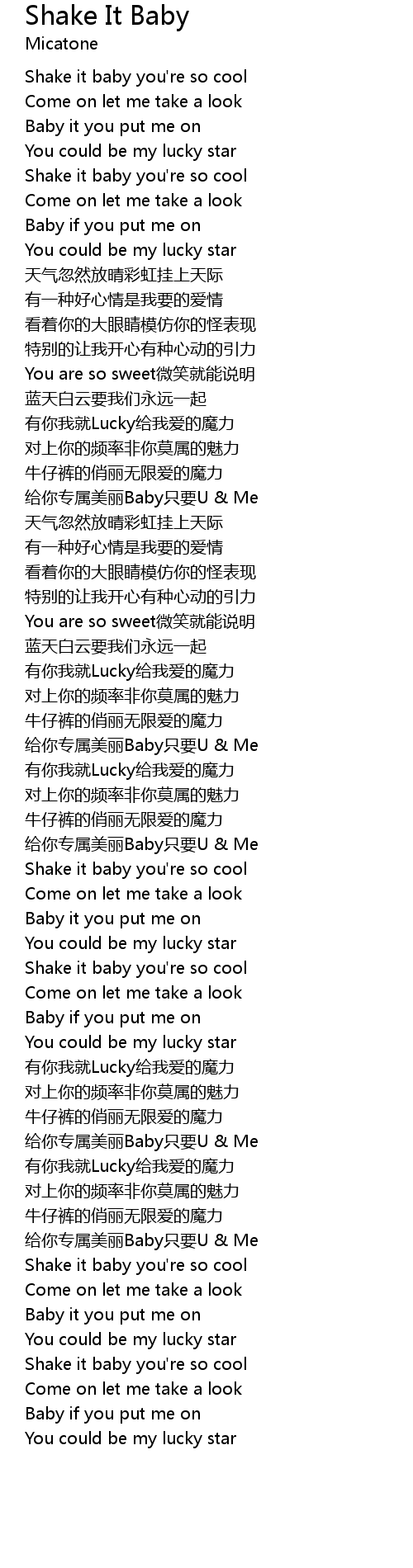 | [02:19.31] | gei ni zhuan shu mei li Baby zhi yao U Me |